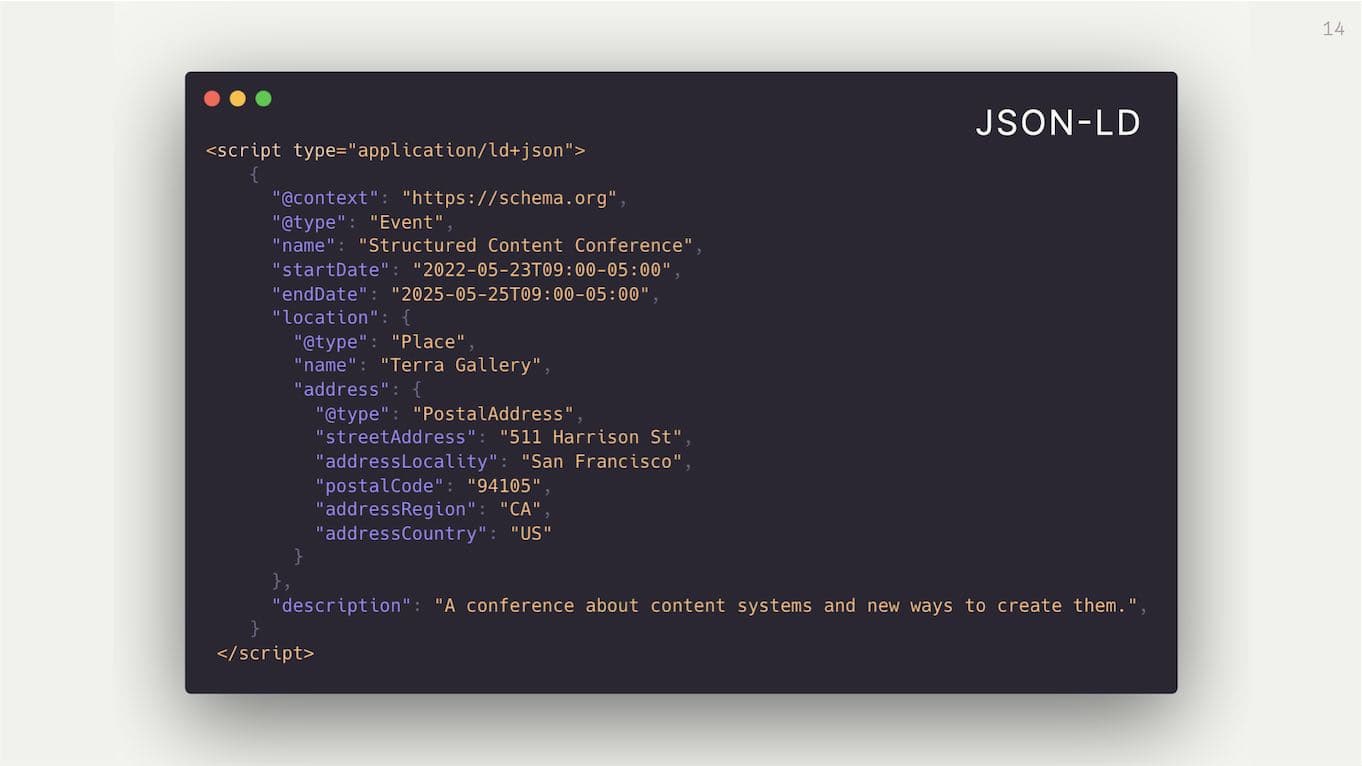 ...by adding structured data. This simply means labelling this content in a way computers can understand. We can programmatically declare a type on it.