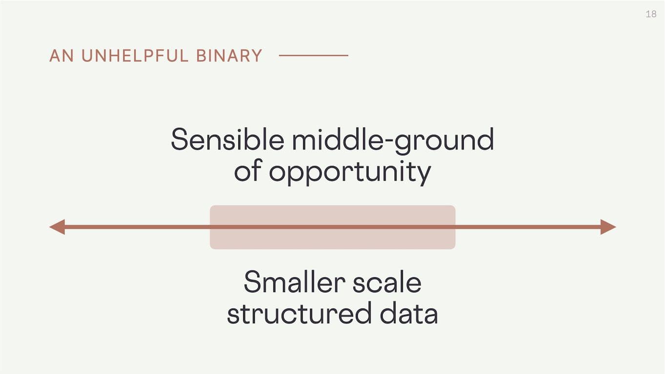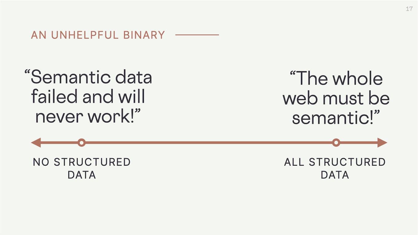 I think a practical question we should all be asking is how do we get here? Rather than trying to make the whole web structured data, how do we simply nudge this arrow slightly further along to the right?