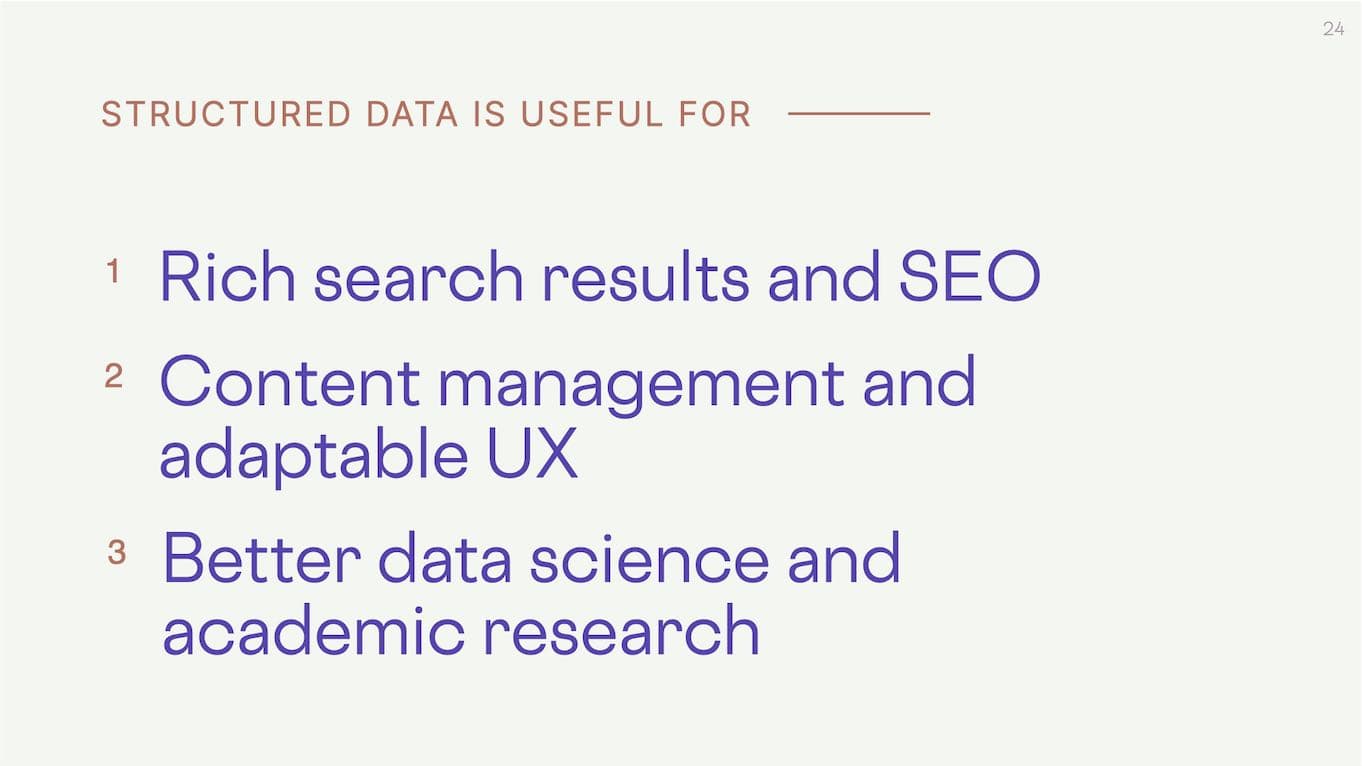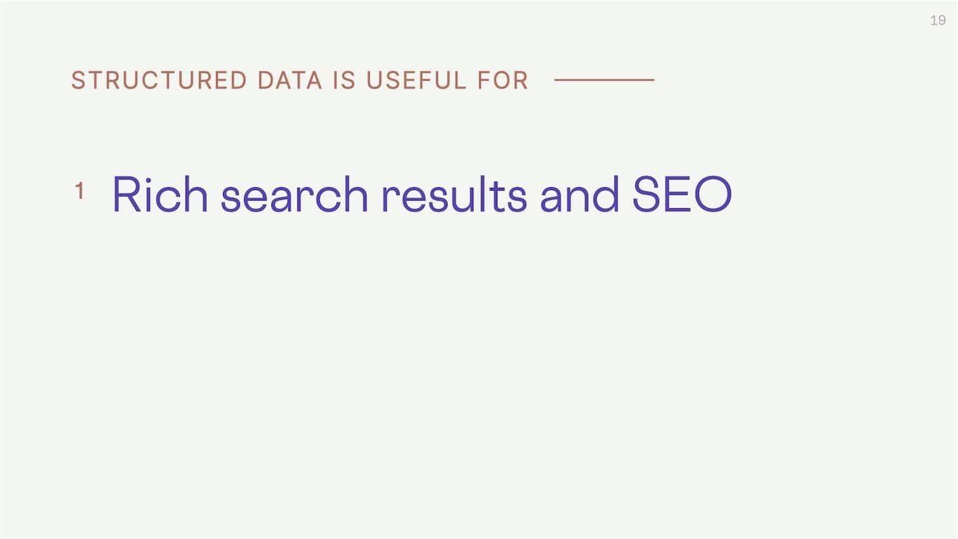 Structured data is clearly useful. In fact, it's already actively used and useful across the web now. The most common use case you've likely heard of is around enabling SEO and “rich results” in search engines.
