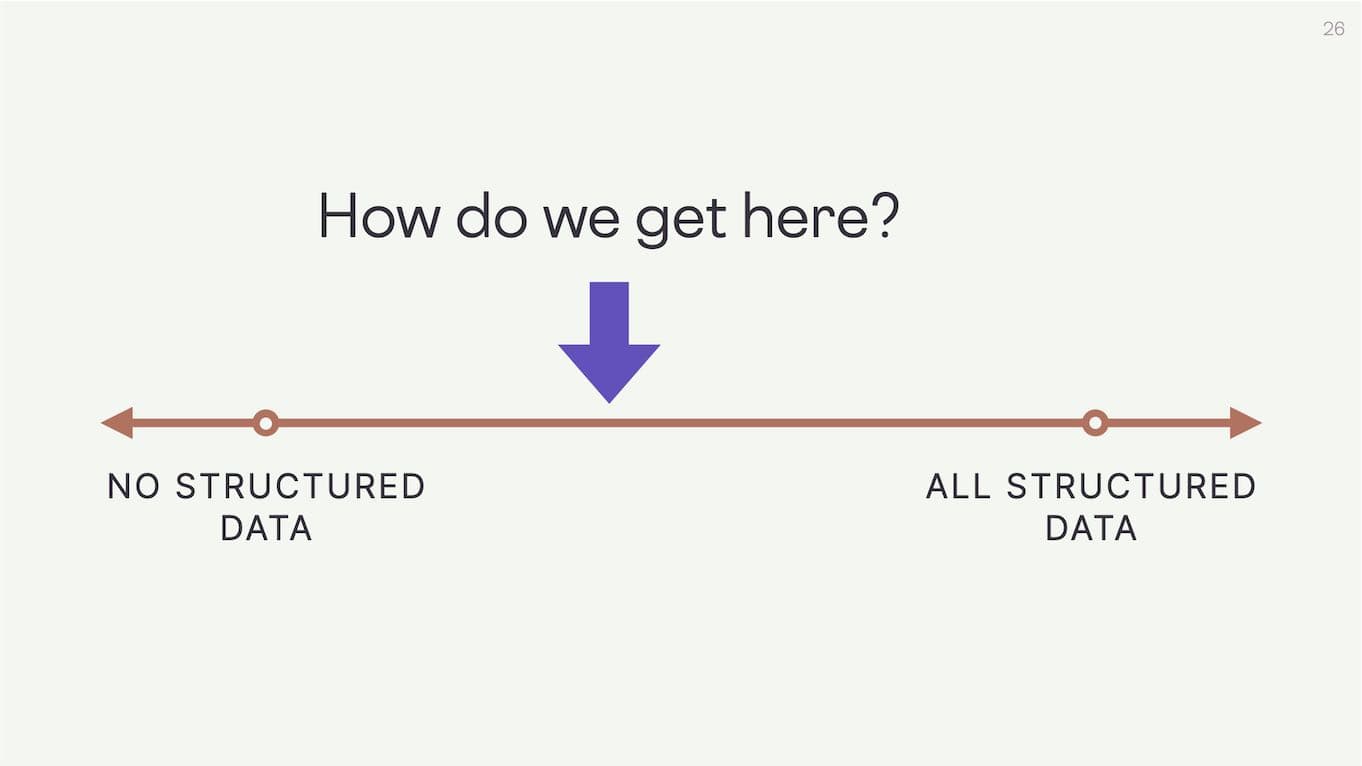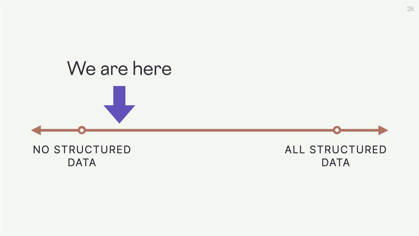 Let's jump back to our structured data binary for a moment. Right now we're about here on the spectrum of no structured data to all structured data. A very small percentage of content on the web is encoded with structured data.