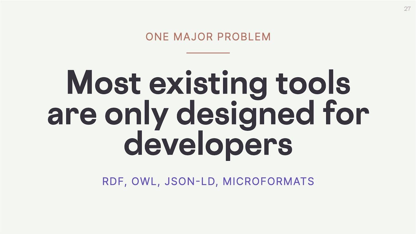 One of the major barriers to this goal is that almost all our existing tools related to structured data are designed to serve developers.