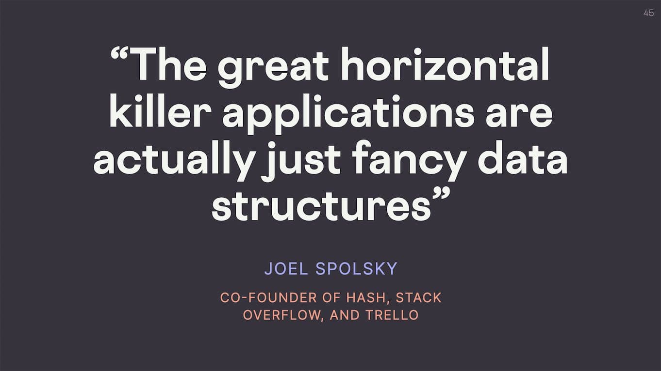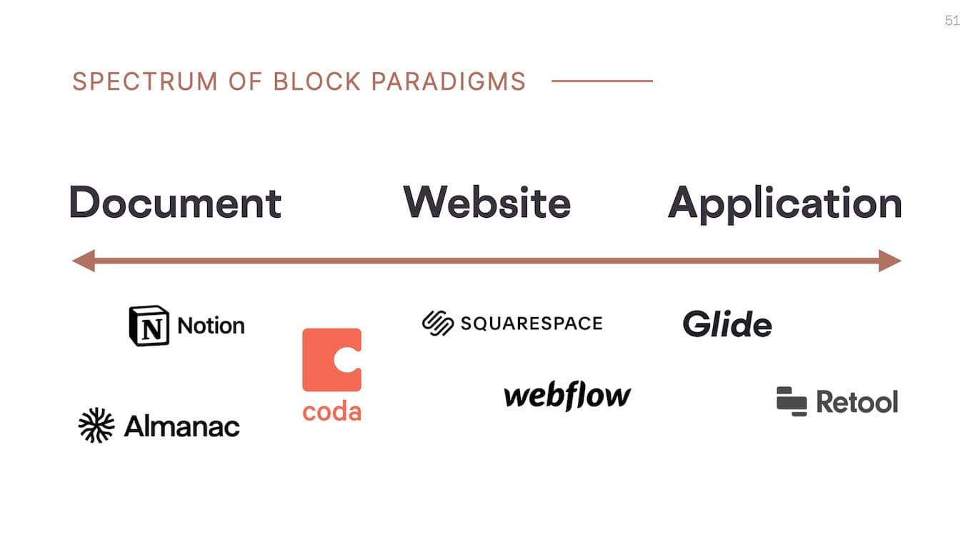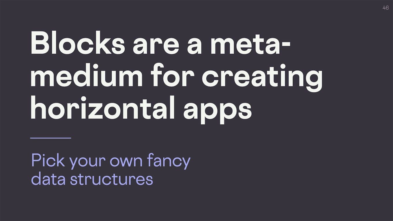 And I think block-based apps are becoming the meta-medium for horizontal apps. They're a material with the potential to do whatever you need them to. They allow you to pick your own fancy data structures from a wide list.
