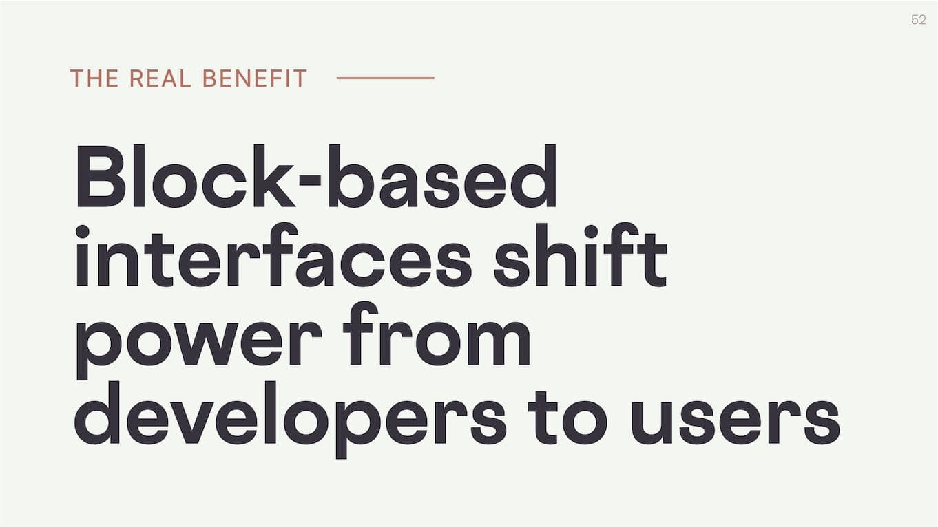 But I think the real benefit of these block-based applications – the reason they're so widely used – is they shift power from developers to users.