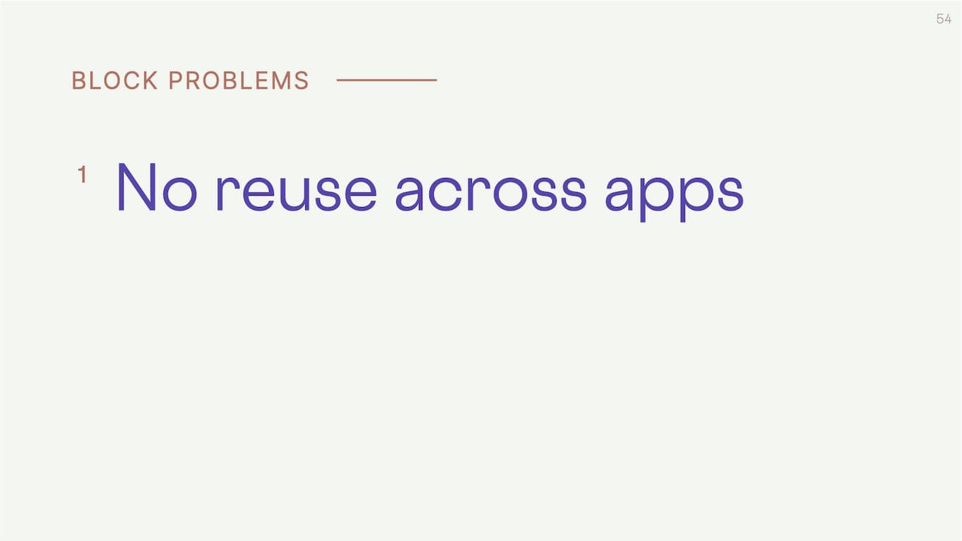 If I have a block that I love using in one of my apps – probably because it's well designed and easy to interace with – I'm only able to use it within that app.