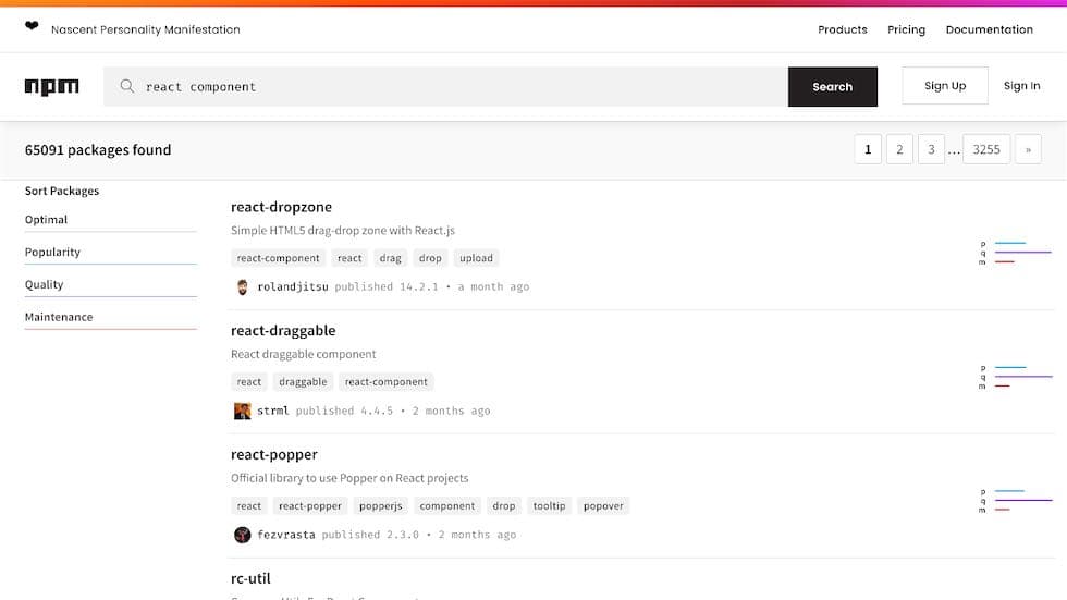 Compare this to what your everyday React developer has access to. If I hop onto the npm package manager for JavaScript, and search for “react components”, I get over 64,000 results to pick from. Obviously, not all of these components are going to be block-like things. Many will be utilities or helpers.