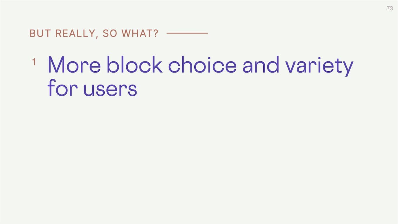We've established that blocks are wildly popular, and they enable hundreds of thousands of people to publish rich, complex documents to the web.