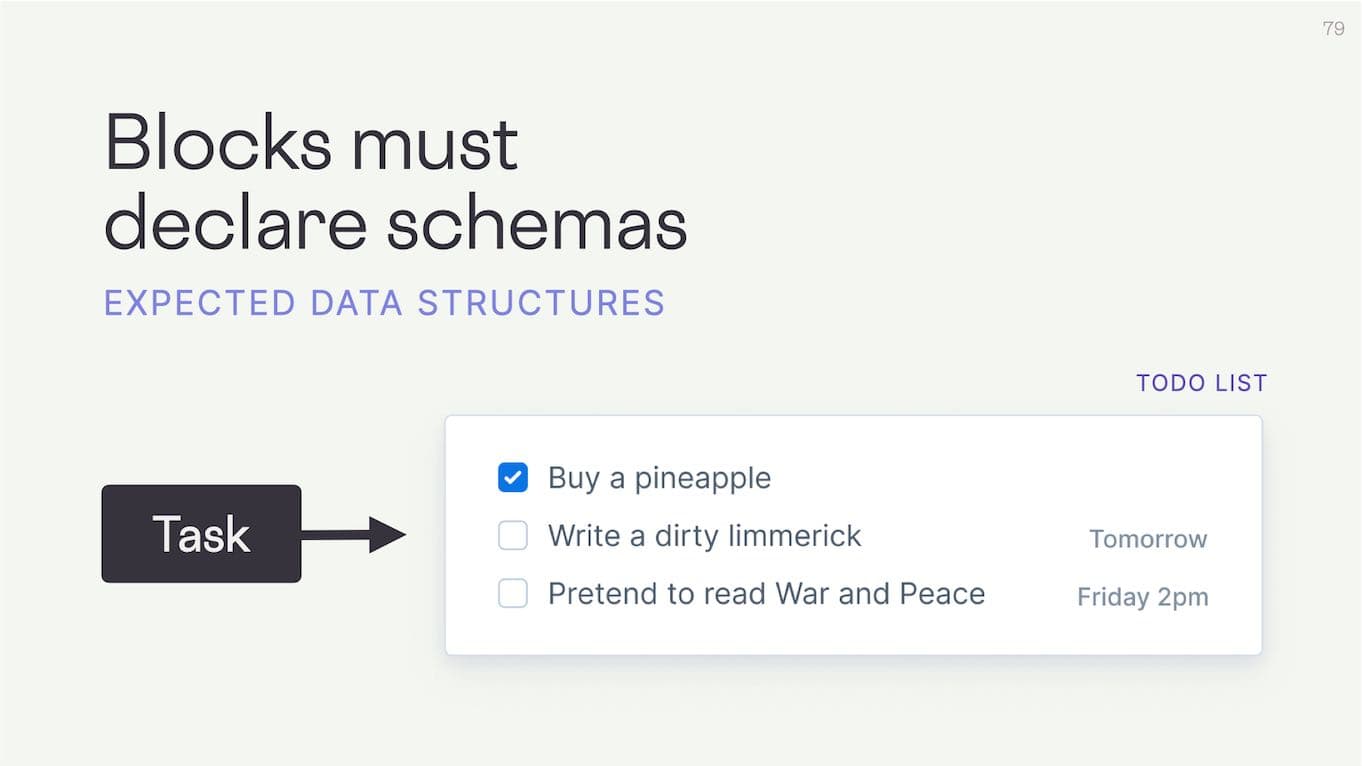 Blocks that follow the protocol must declare a schema – an expected data structure.