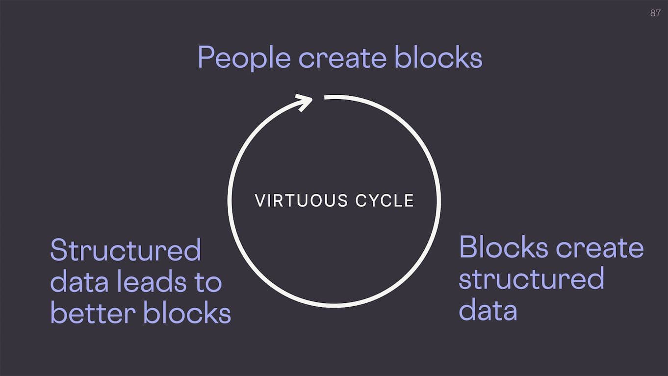 The bigger picture goal of this whole project is to create a virtous cycle. We want people to create blocks, so that blocks can create structured data, so that people have access to more structured data to reuse in blocks.
