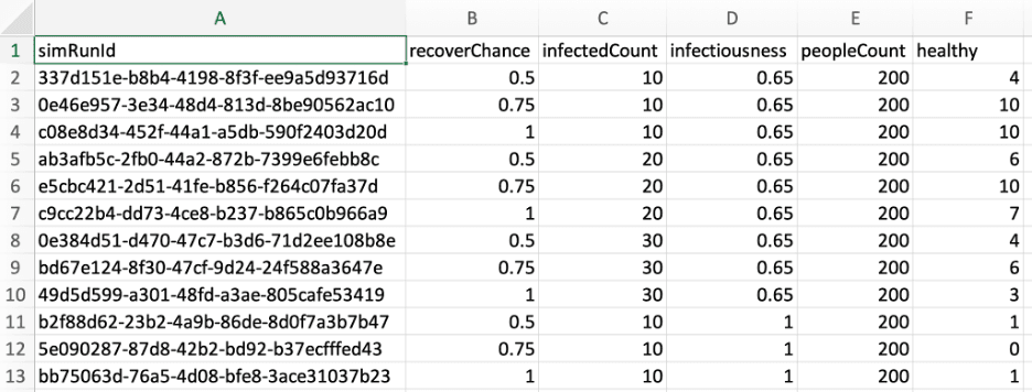 • This will result in a single value generated from each experiment, corresponding to a unique simRunId.